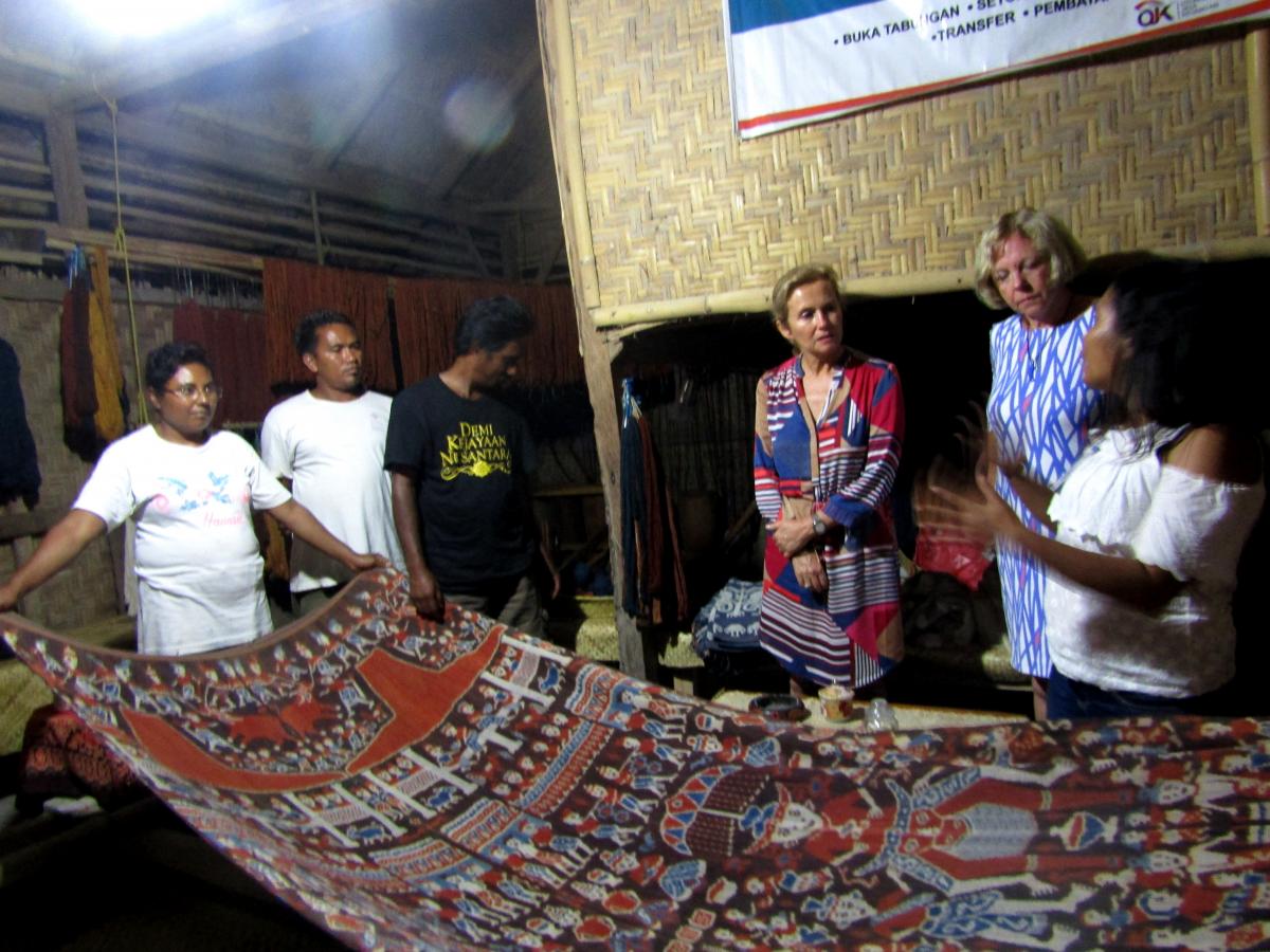 Banyak hal yang dibagikan malam itu, mulai dari aktifitas yang sudah berjalan terkait pelestarian tenun ikat pewarna alam ini, kegiatan bertukar pengetahuan dalam bentuk kelas magang tenun ikat dan penyusunan buku pelajaran muatan lokal tenun ikat sampai sinergi yang telah dibangun dengan berbagai pihak baik di tingkat lokal maupun internasional untuk mendukung kegiatan ekonomi produktif kelompok yang juga berbasis pada kearifan lokal dan keberlanjutan lingkungan. Tidak lupa tim berbelanja beberapa produk tenun ikat milik kelompok. Penting untuk memberdayakan masyarakat dalam hal memproduksi produk wisata tetapi penting juga menciptakan pasarnya, jika bisa dimulai dari diri kita, kenapa tidak?