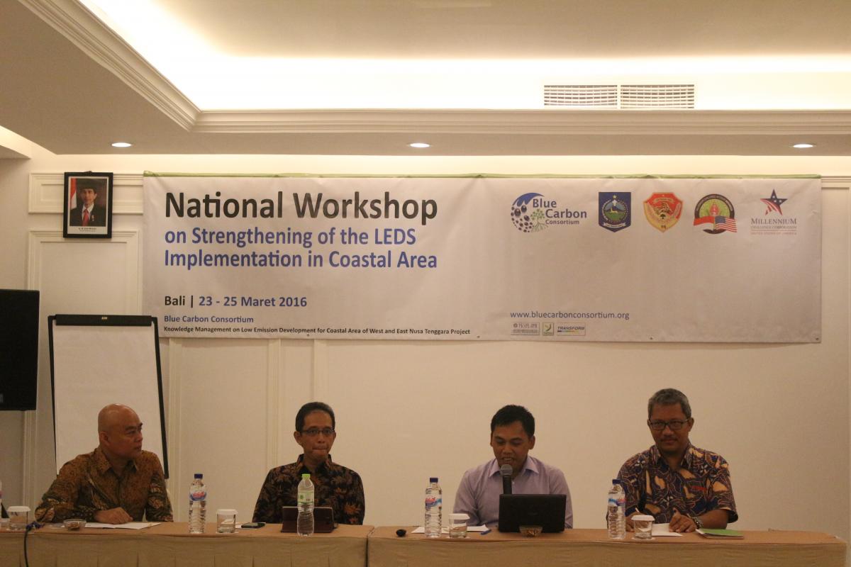 “Jika indonesia mendukung dan bersepakat untuk melaksanakan Paris Agreement serta SDG’s, maka kita harus memulainya dari pesisir-pesisir, desa-desa, from local to global, itu yang harus kita lakukan”, demikian sepenggal kalimat Dekan Fakultas Perikanan dan Ilmu Kelautan Universitas Pertanian Bogor, Bapak Dr.Luky Adriyanto saat membuka National Workshop On Strengthening Of The LEDS Implementation In Coastal Area yang dilaksanakan pada tanggal 24 Maret 2016 bertempat di Hotel Santika Seminyak-Bali. Pada kesempatan tersebut juga Dr.Luky Adriyanto juga menyampaikan bahwa pembangunan rendah emisi di daerah pesisir harus mendapatkan perhatian yang serius bukan hanya karena pesisir menjadi daerah-daerah yang rentan terkena dampak perubahan iklim saja, melainkan karena 90% penduduk yang tinggal di sekitar pesisir tergolong dalam kategori miskin. Kondisi ini terjadi tidak hanya di Indonesia saja melainkan seluruh negara, namun dari angka kemiskinan masyarakat pesisir Indonesia menyumbang sekitar 13%. Sehingga dengan demikian strategi yang dilaksanakan tidak hanya bertujuan untuk menurunkan emisi karbon tetapi lebih dari itu, konsep pembangunan yang dilaksanakan haruslah juga mampu meningkatkan kesejahteraan masyarakat. Kita menyadari bahwa dari sisi konsep kita sudah memiliki cukup banyak referensi, namun yang terpenting adalah bagaimana strategi yang akan dikembangkan untuk membangun desa-desa pesisir tersebut. Karena rencana aksi tersebut belum menyentuh level desa.