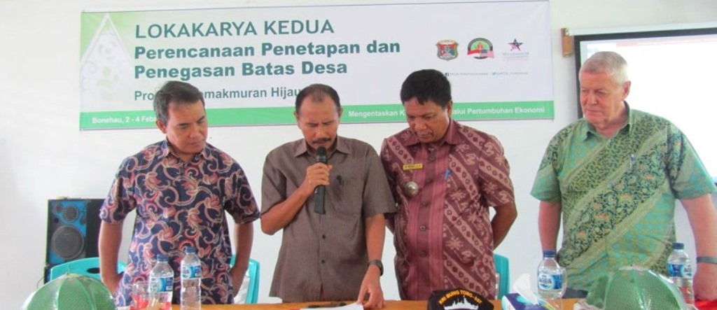 Sebagai tindak lanjut dari kegiatan penetapan dan penegasan batas desa secara partisipatif di Kecamatan Bonehau Kabupaten Mamuju Sulawesi Barat, ABT Associates sebagai penanggung jawab program PLUP melaksanakan kegiatan Lokakarya Kedua Penetapan dan Penegasan Batas Desa pada tanggal 1-4 Februari 2016 di Desa Bonehau, Kecamatan Bonehau Kabupaten Mamuju Provinsi Sulawesi Barat. Kegiatan yang mengangkat tema “Penetapan dan Penegasan Batas Desa Program Kemakmuran Hijau” ini bertujuan untuk :