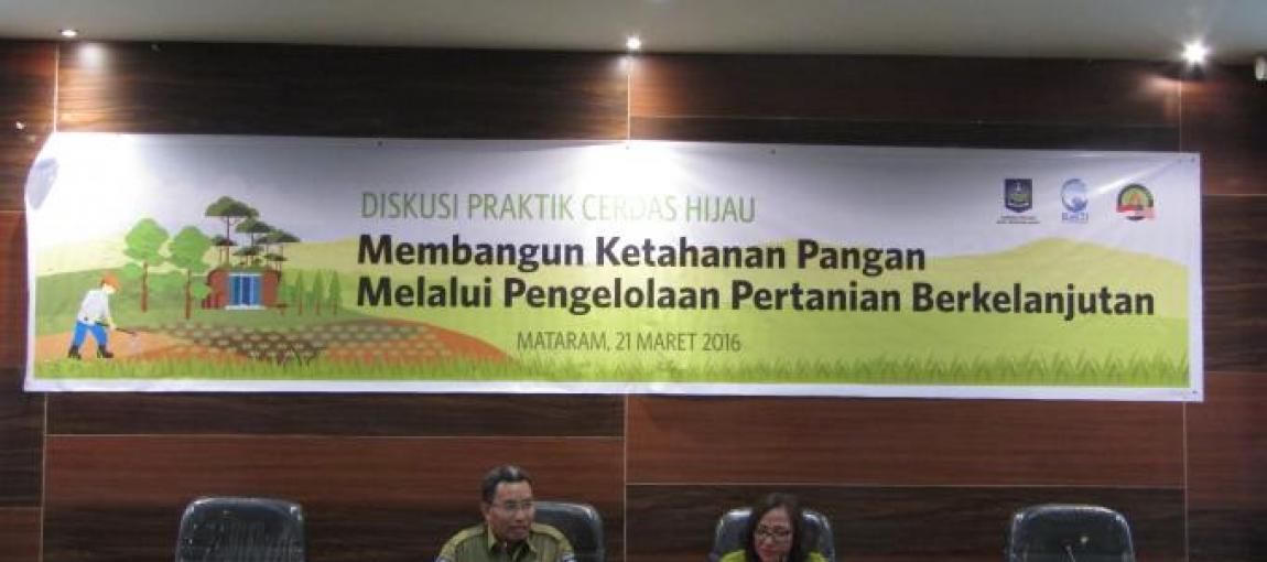 Pertanian berkelanjutan adalah salah satu isu pembangunan rendah karbon yang menjadi perhatian utama Aktivitas Pengetahuan Hijau – Proyek Kemakmuran Hijau MCA-Indonesia. Melalui Konsorsium Petuah, MCA-Indonesia memberi dukungan bagi Universitas Mataram, Nusa Tenggara Barat untuk mendirikan Center of Excelence for the Climate-Resilience Agriculture (CLEAR) atau Pertanian Tahan Iklim yang berfokus pada kegiatan mengumpulkan dan mendiseminasikan pengetahuan terkait pertanian tahan terhadap perubahan iklim. Universitas Mataram telah melakukan serangkaian penelitian dan Focus Group Discussion terkait pertanian berkelanjutan yang tahan perubahan iklim serta faktor-faktor pendukungnya di Nusa Tenggara Barat. Beberapa temuan dalam ragam kegiatan yang telah dilakukan Universitas Mataram dipaparkan dalam Diskusi Praktik Cerdas Hijau bertema ’Membangun Ketahanan Pangan Melalui Pengelolaan Pertanian Berkelanjutan’, diskusi yang difasilitas oleh BaKTI ini dilaksanakan tanggal 21 Maret lalu bertempat di Kantor Bappeda Provinsi Nusa Tenggara Barat, juga menghadirkan Bapak Armin Salassa dari Kelompok Swabina Petani Salassae (KSPS) yang bercerita mengenai proses transformasi perubahan mind set petani untuk beralih dari pertanian kimia menjadi pertanian alami.