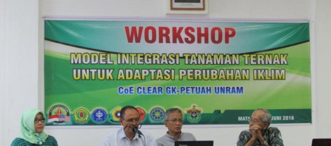 Hal tersebut diatas disampaikan oleh beberapa peneliti yang juga menajadi narasumber pada workshop yang dilaksanakan oleh CoE CLEAR PETUAH Universitas Mataram pada tanggal 15 Juni 2016. Workshop yang bertempat di ruang sidang Fakultas Pertanian ini mengangkat Tema “Model Integrasi Tanaman dan Ternak untuk Adaptasi Perubahan Iklim”. Tujuannya adalah untuk mengumpulkan model-model usahatani yang telah diterapkan sebagai bentuk adaptasi teradap perubahan iklim. Beberapa model yang telah diterapkan adalah dengan mengintegrasikan tanaman dan ternak, melakukan budidaya holtikultura berkelanjutan serta dengan pengembangan usahatani terpadu tanpa limbah.