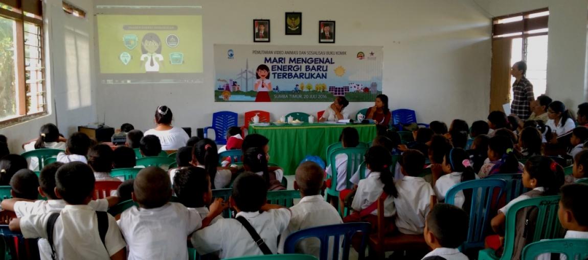 Pemutaran Video Animasi dan Sosialisasi Buku Komik "Mari Mengenal Energi Baru Terbarukan" di Sumba Timur