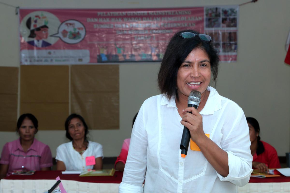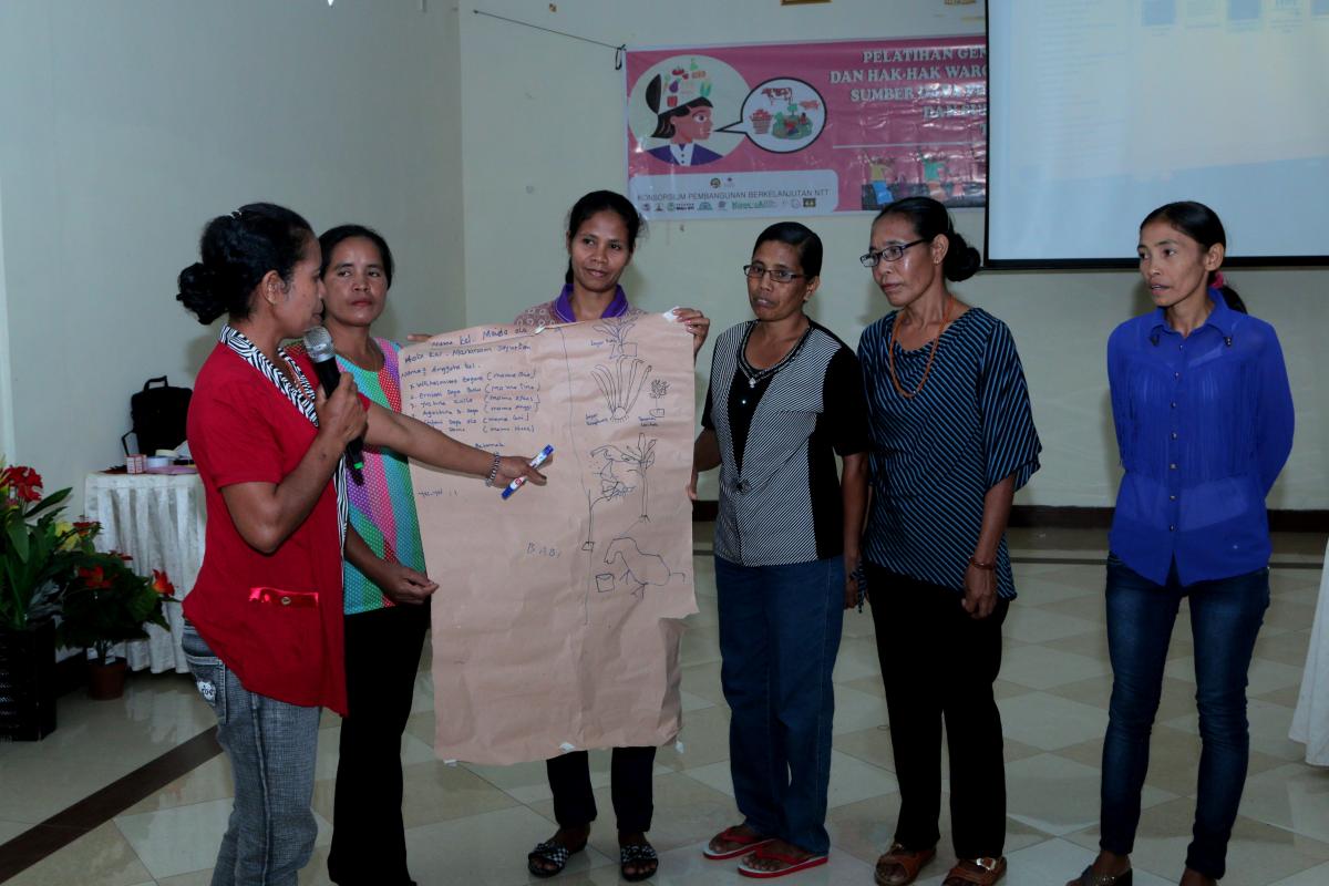 Sementara itu jika dijabarkan lebih rinci, tujuan kegiatan ini adalah meningkatkan pengetahuan dan kesadaran kritis perempuan dan kelompok rentan lainnya tentang kesetaraan, keadilan dan relasi sosial gender, dan hak-haknya dalam pengelolaan sumberdaya alam, meningkatkan pengetahuan dan pemahaman tentang peraturan-peraturan yang mendukung perempuan dalam memperjuangkan kesetaraan dan keadilan, memetakan potensi, peran perempuan dan kelompok rentan lain serta tantangan yang dihadapi dalam pengelolaan SDA, menyusun strategi untuk mengoptimalkan potensi dan sumberdaya dengan merancang kegiatan-kegiatan untuk meningkatkan keterlibatan mereka dalam program (agenda utama perempuan di masing-masing desa) serta meningkatkan kerjasama antar sesama perempuan sebagai agen perubahan sosial/champion di desa.