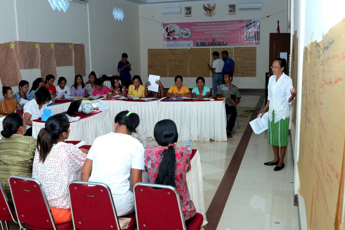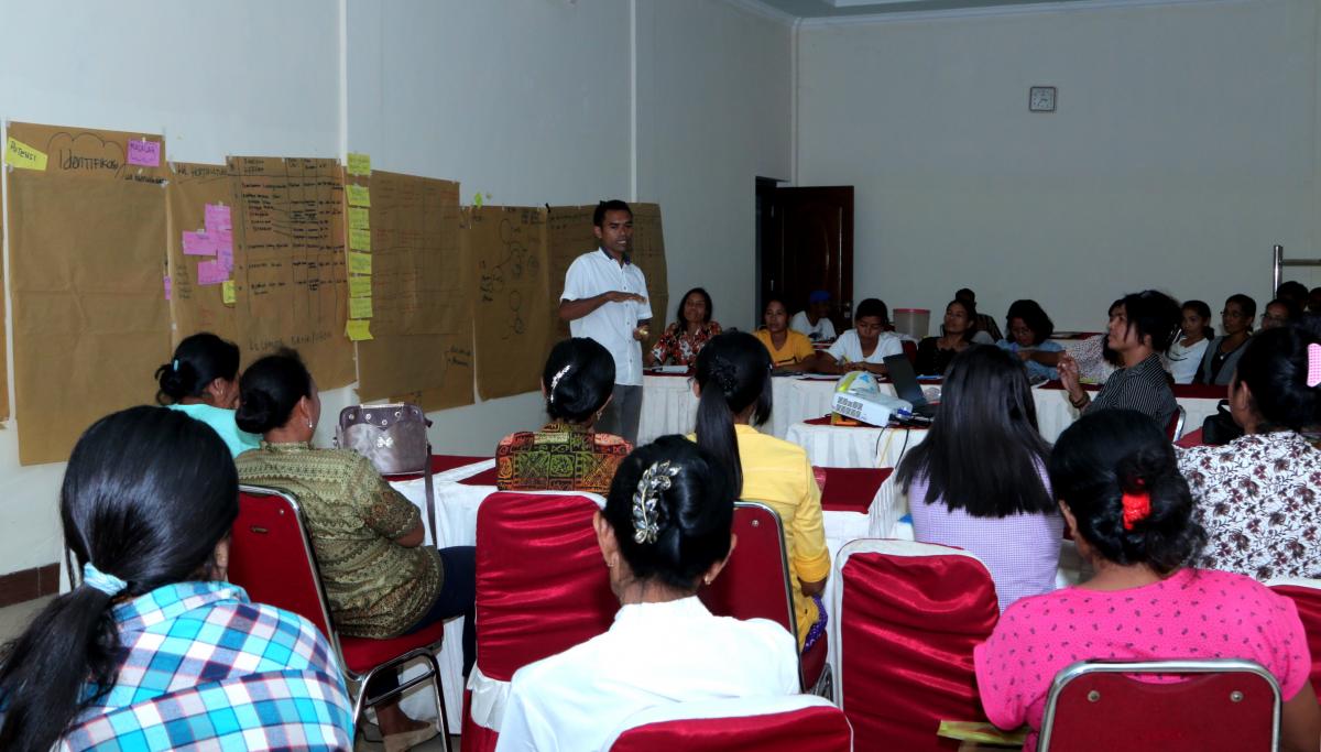 Pelatihan yang difasilitasi oleh ibu Deby Rambu Kasuatu (Consultan SGIP, KPB-NTT) dan Ibu Wiyati W.S (Badan Pengurus YWKW) yang merupakan fasilitator Lokal yang telah berpengalaman sejak tahun 1999 di dunia Community Development berlangsung sejak tanggal 24 hingga 25 April 2017 ini melibatkan 29 peserta dari 10 desa dampingan Konsorsium Pembangunan Berkelanjutan NTT di daerah das Mangamba Katewel. Peserta terdiri dari 28 peserta perempuan dan satu orang laki-laki yang datang menggantikan istrinya yang sedang sakit. Peserta diarahkan untuk lebih memahami bagaimana posisi perempuan dalam kehiduan rumah tangga dan masyarakat. Dengan memahami posisi dan memaknai perannya, diharapkan perempuan mampu melihat dan menjadi bagian dari penentu perubahan dalam keluarga atau pun lingkungan masyarakatnya.