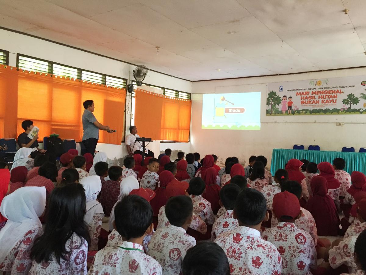 Video animasi diputar dalam dua sesi. Setelah film diputar selama dua menit, film dhentikan dan sang host, Kak Heru memberikan pertanyaan seputar Hasil Hutan Bukan Kayu seperti madu dan kemiri. Madu diproduksi oleh lebah, sedangkan kemiri dihasilkan oleh pohon yang banyak tumbuh di hutan. Madu merupakan antioksidan yang kuat, dapat menghaluskan kulit serta menjadi obat bagi penyakit pernafasan. Sedangkan kemiri dimanfaatkan untuk kecantikan karena dapat menyuburkan alis, bulu mata, serta menyuburkan rambut. Setiap anak yang berhasil menjawab pertanyaan mendapatkan hadiah menarik.