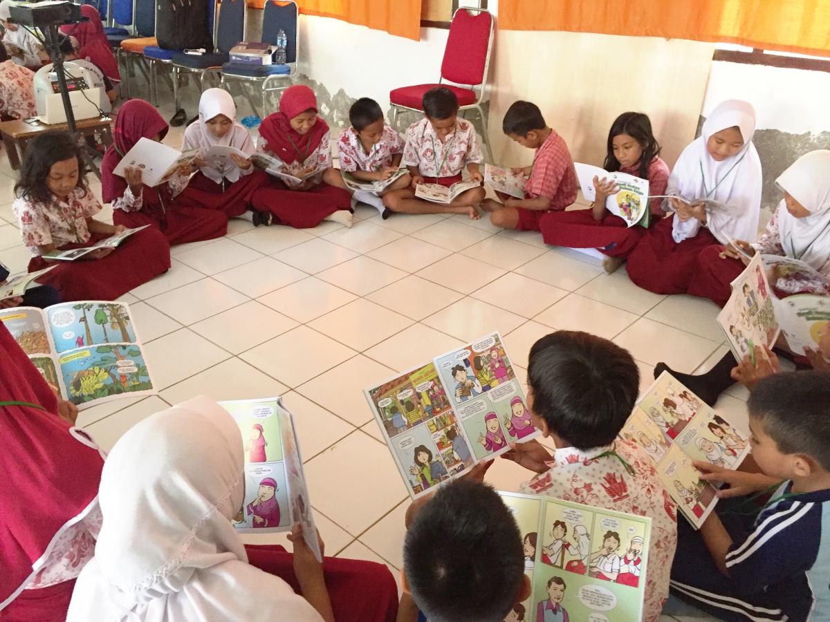 Seusai memilih nama kelompok, mereka pun mulai membaca komik bersampul putih tersebut. Isi komik tidak jauh dari konten video animasi, namun berisikan informasi yang lebih rinci di mana hasil hutan bukan kayu juga memiliki nilai ekonomis sehingga bisa menjadi mata pencaharian masyarakat, selaras dengan potensi yang dimiliki oleh Kabupaten Mamuju. Suasana menjadi hening, semua  anak serius membaca buku. Tak lama berselang, satu dua anak mulai berseru “Selesai!” menandakan mereka telah menamatkan buku tersebut.