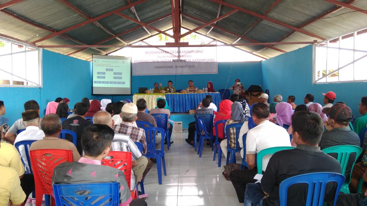 Apa yang menjadi mimpi dari masyarakat Pulau Karampuang terjawab dengan adanya proyek pembangunan Pembangkit Listrik Tenaga Surya (PLTS) berbasis skala komunitas melalui hibah dari proyek MCA-Indonesia. Pada tanggal 30 Maret 2017, sebagai salah satu rangkaian kegiatan penerima hibah Konsorsium PT. Sky Energy Indonesia dan PT. Inti Karya Persada Tehnik (IKPT) menggelar Musyawarah Desa guna membahas mengenai Pembangunan PLTS. Kegiatan ini dihadiri oleh Kepala Desa beserta jajarannya, Badan Permusyawaratan Desa Karampuang, Tokoh Masyarakat, Perwakilan dusun dan RT/RW Desa Karampuang, Tokoh Pendidikan, Tokoh Kesehatan, Tokoh Perempuan serta Tokoh Pemuda.