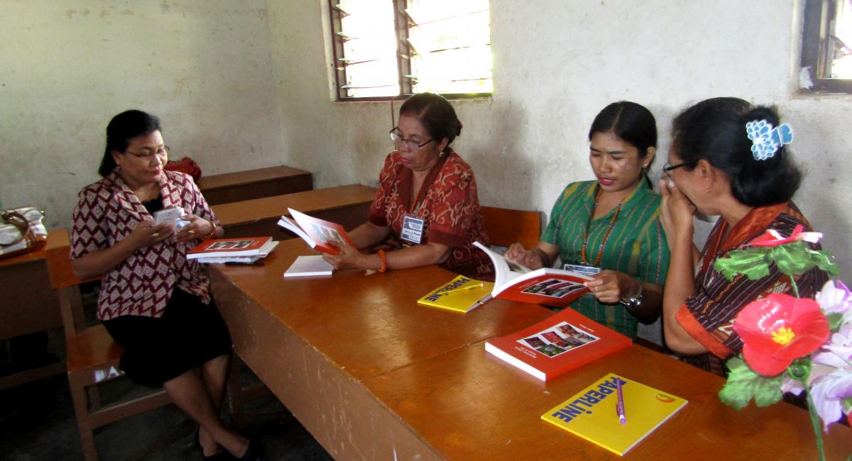 “Saya baru kali ini terlibat dan saya sangat senang. Jaman dulu kami cerita dari mulut ke mulut saja jika mau ajarkan tenun ikat pada anak-anak tetapi sekarang luar biasa sudah ada buku bacaannya, bukti fisik pengetahuan-pengetahuan tentang tenun ikat itu sudah didokumentasikan ” ucap Ibu Dei Bunga, guru kelas 5 SDM Waingapu 2 salah satu sekolah rujukan, peserta kegiatan hari kedua.