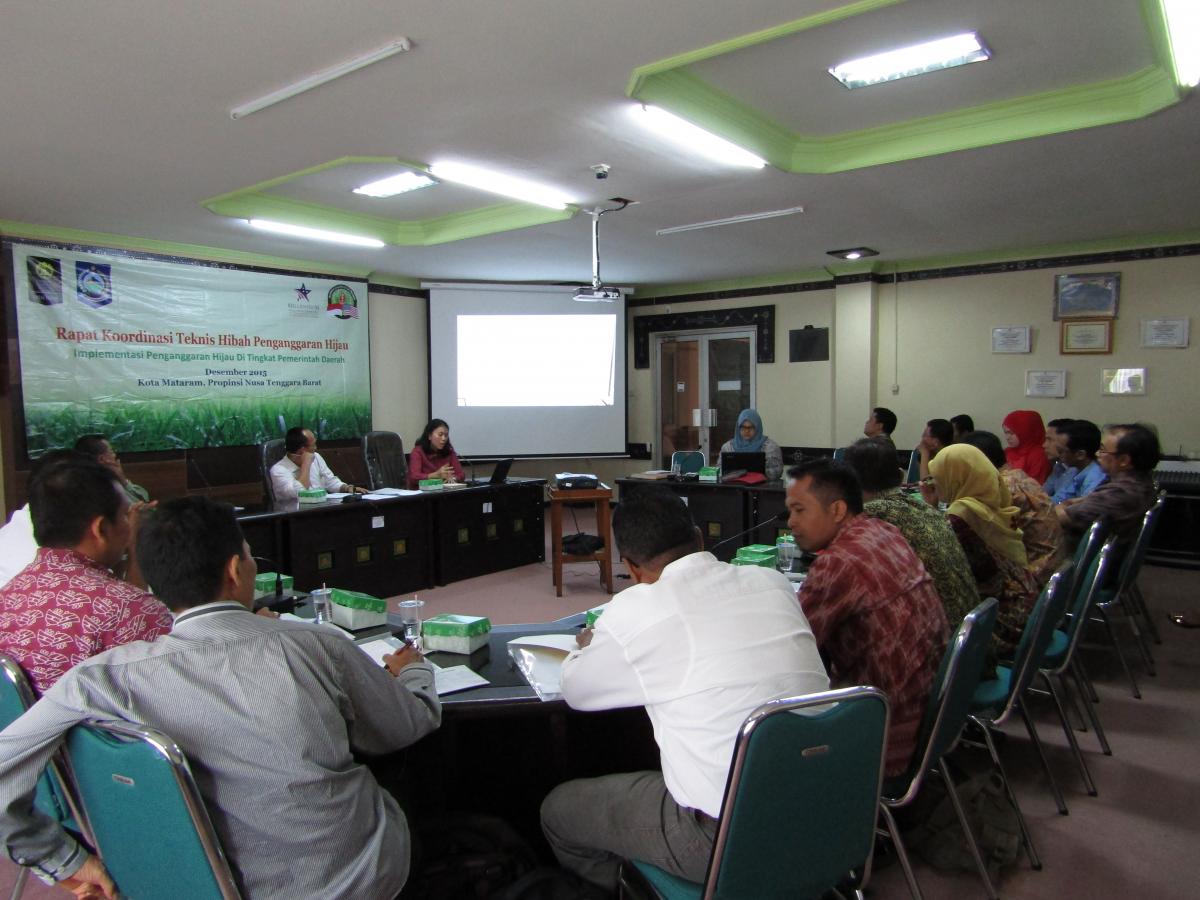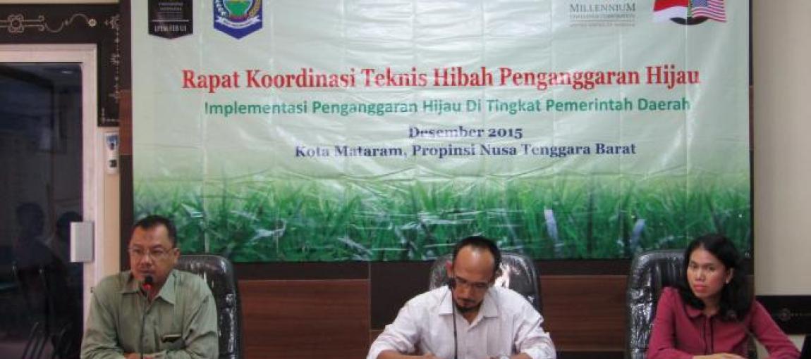Di Provinsi Nusa Tenggara Barat, telah dikeluarkan Peraturan Gubernur (Pergub) No. 12 Tahun 2012 Tentang Rencana Aksi Daerah Penurunan Emisi Gas Rumah Kaca (RAD GRK) Provinsi Nusa Tenggara Barat. Ada 6 Satuan Kerja Perangkat Daerah (SKPD) yang bertanggung jawab terhadap RAD GRK Nusa Tenggara Barat dibawah koordinasi Bappeda Provinsi yaitu : SKPD berbasis lahan (Dinas Kehutanan, Dinas Pertanian, Dinas Peternakan dan Dinas Perkebunan), SKPD berbasis energi dan transportasi (Dinas Pertambangan dan Energi dan Dinas Perhubungan) serta SKPD berbasis Limbah (Badan Lingkungan Hidup Daerah dan Dinas Pekerjaan Umum). Selanjutnya RAD GRK akan disinkorinasasikan dengan dokumen perencanaan daerah RPJMD baik dalam hal perencanaan, pelaksanaan program dan penganggaran sehingga berkontribusi pada pengurangan kemiskinan di NTB dengan tetap memperhatikan pada pembangunan yang ramah lingkungan. Lembaga Penyelidikan Ekonomi dan Masyarakat – Fakultas Ekonomi dan Bisnis Universitas Indonesia (LPEM FEB UI) adalah penerima hibah tunggal Pengetahuan Hijau yang merupakan bagian dari proyek Kemakmuran Hijau , yang bekerjasama dengan penelitian lokal dari Universitas Jambi, Universitas Mataram, dan Universitas Nusa Cendana untuk bersama-sama menjalankan program Green Budgeting (Penganggaran Hijau). Untuk itu, pada tanggal 16 Desember 2015 bertempat di Aula Kantor Bappeda Nusa Tenggara Barat, tengah berlangsug Rapat Koordinasi Teknis Hibah Penganggaran Hijau - Implementasi Penganggaran Hijau di tingkat Pemerintah Daerah. Kegiatan ini bertujuan untuk melihat bagaimana pelaksanaan penganggaran hijau di tingkat daerah. Secara khusus bertujuan untuk ; konfirmasi data dan informasi terkait perencanaan, implementasi, evaluasi RAD GRK, mendapatkan masukan mengenai bagaimana agar pelaksanaan RAD GRK secara khusus dapat berjalan efektif dan sejalan dengan tujuan pembangunan daerah, serta mendapatkan masukan bagaimana penganggaran hijau dapat dilaksanakan di level provinsi maupun kabupaten. Kegiatan ini dihadiri perwakilan dari DPRD Provinsi, Bappeda Provinsi, Akademisi, LSM, Dinas Peternakan dan Dinas PU dan dibuka oleh Bapak Samsudin (Kabid Fisik dan Prasarana Bappeda NTB/Tim Koordinasi Program MCA-Indonesia)