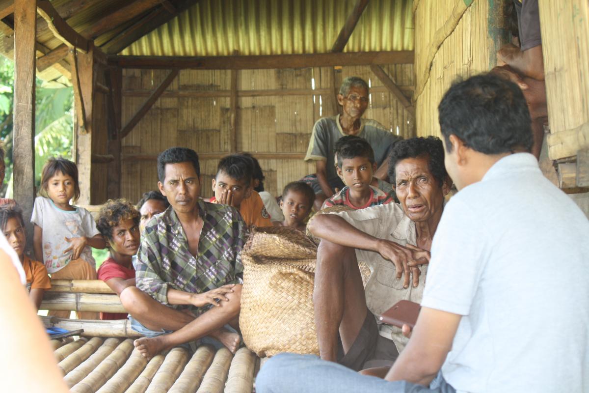 Hari pertama kunjungan, 23 Feb tim bertemu dan mewawancarai warga yang dulu adalah pemilik lahan.  ”Saya menjual tanah ke orang luar tahun 2010 seluas 16Ha dengan harga 50 juta/ha karena kebutuhan ekonomi.  Hasilnya kemudian kami bagi ke semua anggota keluarga” cerita Pak Yohanis Ramone (78), warga kampung Hurikawango, Desa Tanjung Karoso Kecamatan Kodi.  Ketika kami berkunjung ke lokasi pesisir, lahan yang sudah dibeli tersebut sama sekali belum dikelola dan dimanfaatkan oleh investor. Bahkan warga masih memanfaatkan laut disekitarnya untuk tempat bermain anak-anak dan persinggahan nelayan yang baru pulang melaut mencari ikan.