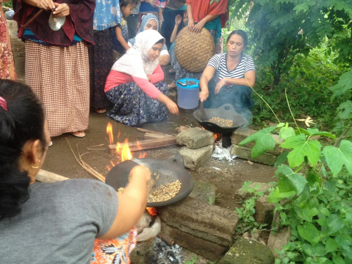 Sembari mendengarkan cerita Ibu-ibu anggota KUP kami menikmati secangkir kopi yang mereka hasilkan. Waktu itu, kami disuguhkan Kopi original dan rasa durian. Aroma khas kopi Lombok jelas tercium ditambah dengan aroma kopi yang sedang disangrai, menambah hangatnya suasana yang sedikit gerimis. Hari semakin sore, awan hitam semakin tebal. Tim Monev memutuskan untuk segera kembali ke Mataram sebelum malam menjelang karena besok pagi masih ada lokasi yang harus dikunjungi yang membutuhkan stamina yang ekstra.