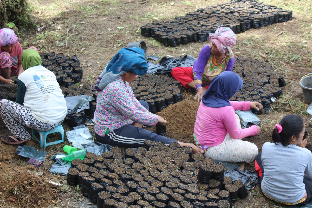 Sementara itu, Lince, Pendamping Nursery (pembibitan) di Desa Hinua mengakui bahwa kehadiran Rumah Semai telah memberi tambahan pendapatan bagi warga, khususnya kaum perempuan. Proses pembibitan diawali dengan pengisian tanah ke dalam polybag yang telah dicampur dengan sekam padi. Pengisian polybag ini melibatkan sepuluh Kelompok Perempuan, di mana masing-masing kelompok terdiri dari sembilan orang perempuan dan dibantu seorang laki-laki yang bertugas untuk menggali tanah dan mencampur bahan isisan. Kaum perempuan dipilih dari warga sekitar yang dianggap paling membutuhkan tambahan penghasilan seperti perempuan kepala rumah tangga, dan penyandang disabilitas. “Kaum perempuan di Desa Hinua begitu antusias ingin ikut terlibat, tapi kami tidak bisa menerima semua, karena keterbatasan jumlah dan persyaratan tertentu,” katanya.