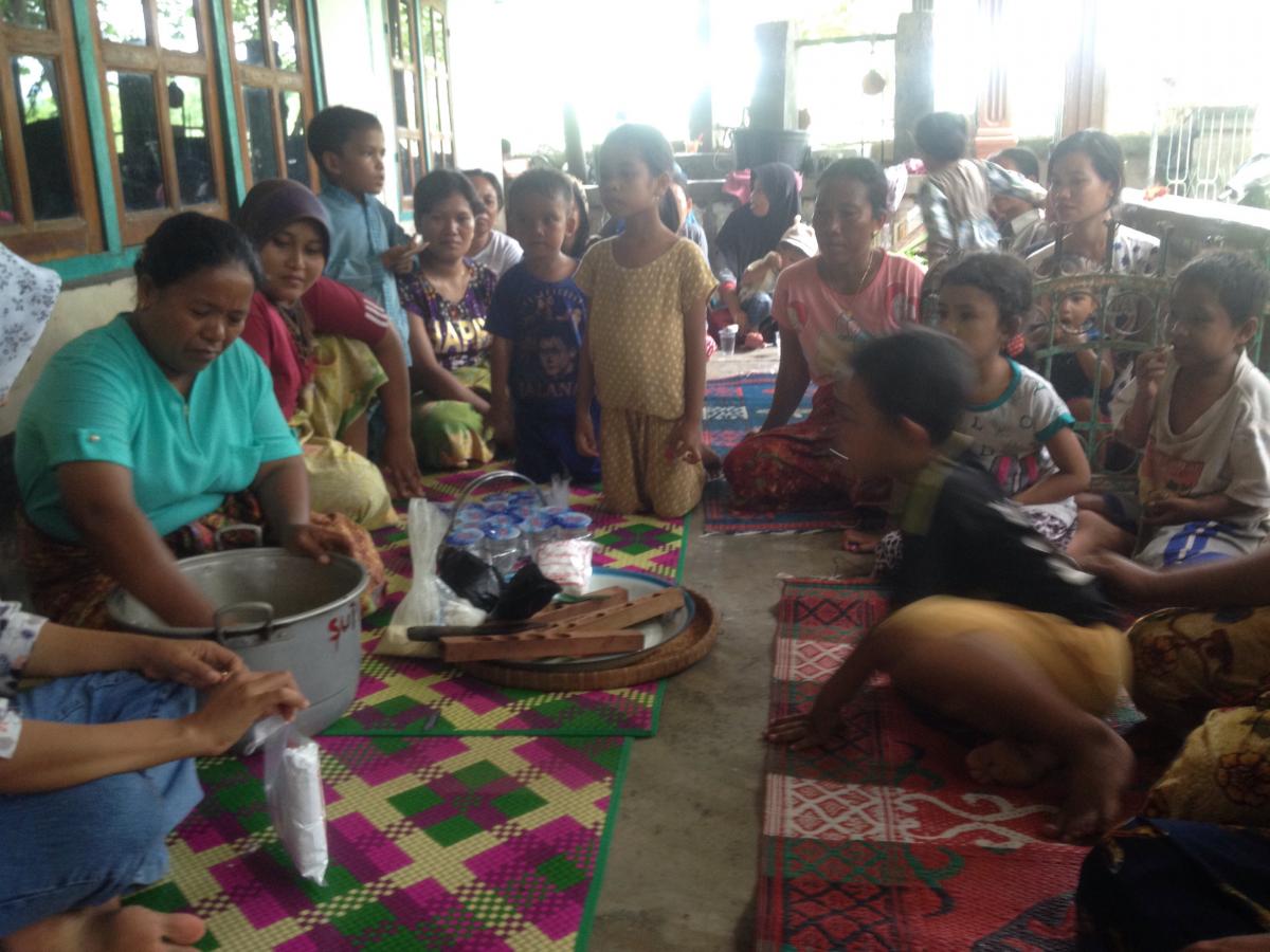 Setelah berdiskusi dan menyepakati jadwal pertemuan berikutnya, tidak terasa Kue Tempani yang telah dijemur tadi mulai mengeras. Masing-masing ibu mendapatkan bagian kue sebagai tester. Rona kepuasan tampak diwajah mereka setelah mencicipi kue yang sudah mereka buat. Tak lama, satu persatu mereka meninggalkan tempat pelatihan karena berbagai pekerjaan di sawah sudah menunggu. Sesaat kemudian kembali kami melihat ibu-ibu tersebut. namun kali ini mereka berjalan dengan peralatan yang cukup lengkap. Keranjang, sabit dan cangkul di tangan mereka. Tak lupa capil sudah melekat di kepala mereka. senyum ramah menghiasi wajah mereka saat berpapasan dengan kami ketika hendak pulang. Langkah mereka terlihat sangat ringan, padahal mereka akan melakukan pekerjaan yang cukup berat. Yang semestinya dilakukan oleh lelaki. Ah ya, lelaki. Sejak pertama memasuki desa kami tidak pernah menemukan lelaki dewasa. Baik di pinggir jalan, teras rumah apalagi di tengah sawah. Awalnya kami berfikir, mungkin para lelaki dewasa sedang beristirahat sepulang sholat jumat. Tapi hingga sore kami hanya bertemu dengan lelaki yang masih berusia anak-anak, remaja dan lansia. Yang usia produktif kemana?