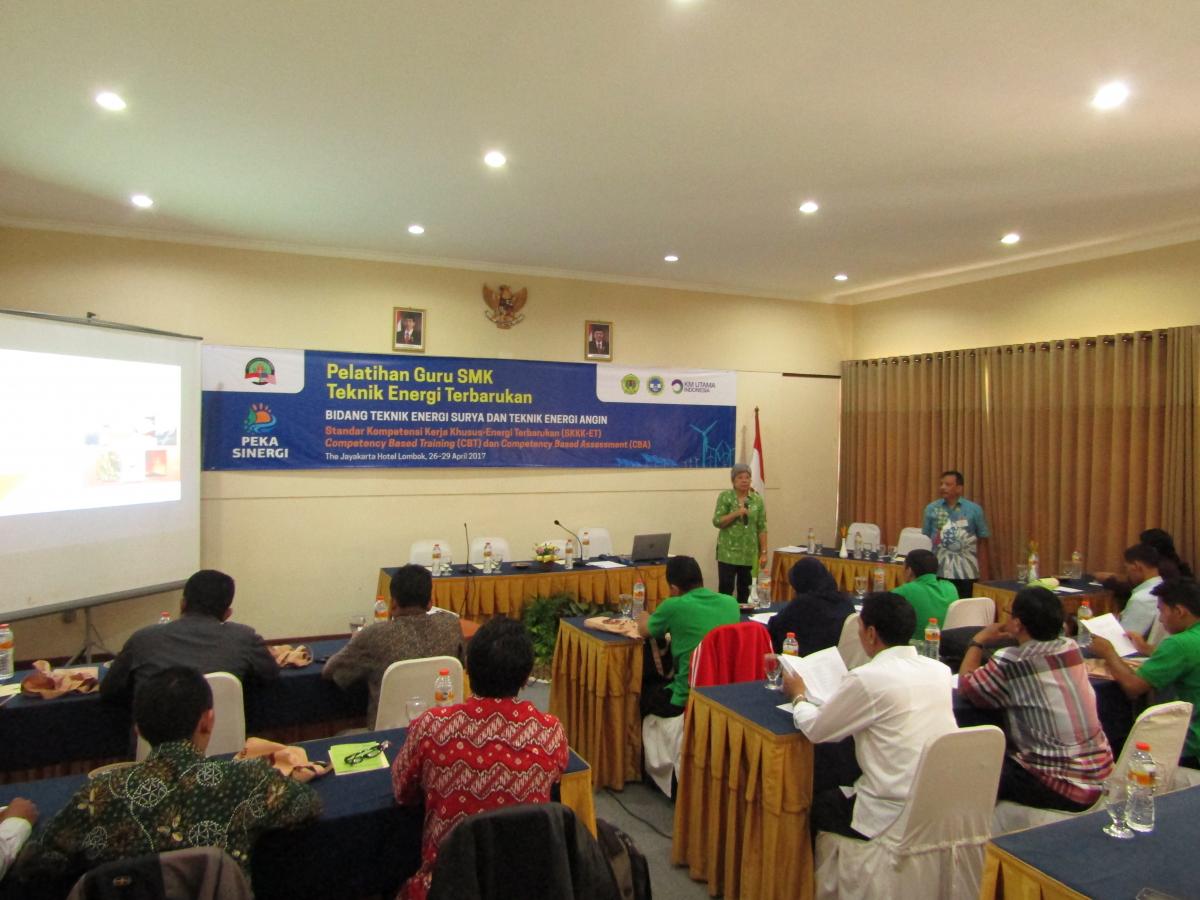 Pelatihan diadakan pada tanggal 26-29 April (energi surya dan angin) dan 2-5 mei 2017 (energi hidro dan bioenergi) bertempat di The Jayakarta Hotel. Pelatihan ini diadakan dalam rangka meningkatkan kompetensi guru bagi 12 SMK penerima manfaat proyek Peka Sinergi yang didanai oleh MCA Indonesia. Sebelum diadakannya kegiatan pelatihan peningkatan kompetensi guru SMK, Peka Sinergi lebih dulu memberikan pelatihan awal tentang energi terbarukan yang disampaikan oleh para ahli dari TEDC Bandung dan UNRAM sesuai dengan tema energi terbarukan yang akan dikembangkan di masing-masing SMK. Fokus dari kegiatan pelatihan sebelumnya meliputi sumber energi terbarukan, konversi energi, pemasangan, pengoperasian dan pemeliharaan teknologi khusus.