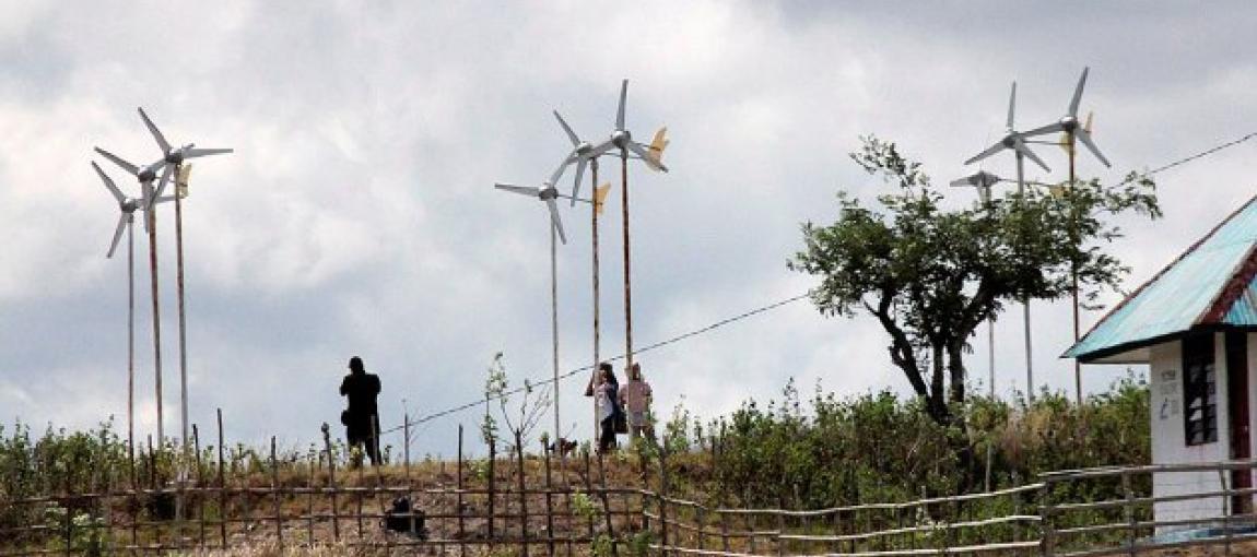 Pembangkit listrik tenaga angin dengan 20 kincir terpasang di Kampung Kalihi, Desa Kamanggih, Kecamatan Kahaungu Eti, Kabupaten Sumba Timur, Nusa Tenggara Timur, Selasa (25/10). Energi listrik yang dihasilkan digunakan untuk memenuhi kebutuhan sekitar 20 rumah yang tidak terjangkau akses listrik PLN.