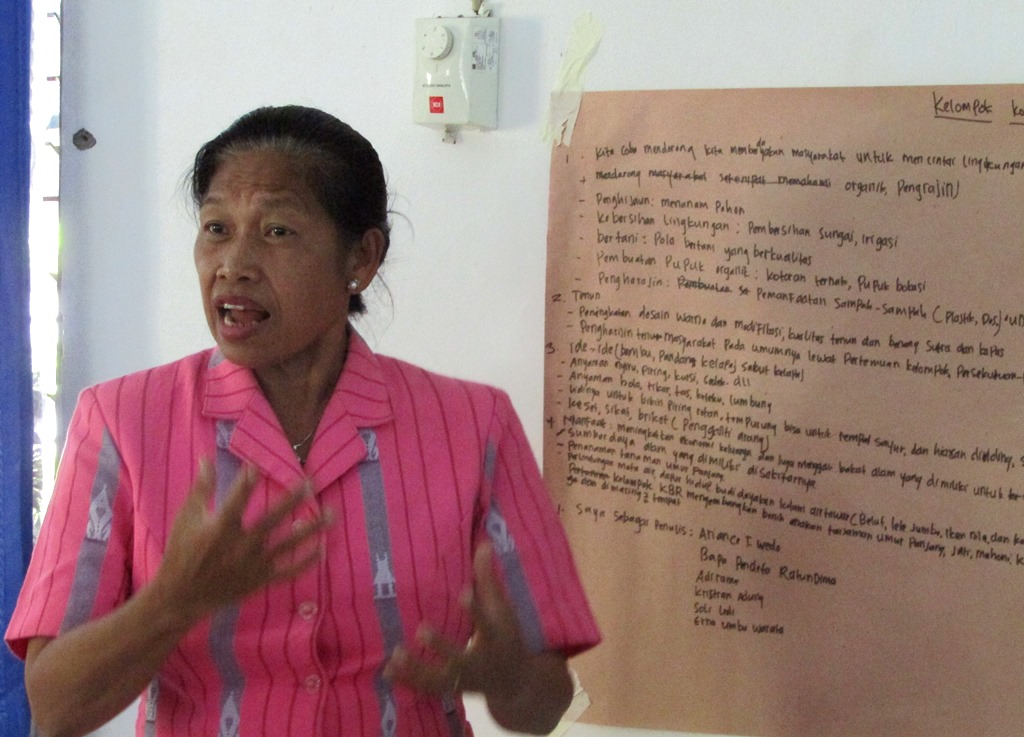 Berdasarkan hal-hal yang telah dilakukan selama ini maka kelompok LSM juga mempunyai ide/gagasan kedepan untuk mendorong Pemda membuat Perda Pengelolaan Sumberdaya Alam berkelanjutan dan menghidupkan kembali kearifan lokal (Ruatu Adat) sehingga ada payung hukum bagi apa yang sudah dikerjakan selama ini sekaligus mempermudah dalam proses advokasi untuk pemenuhan hak-hak warga terkait PSDA. Misalnya di Kecamatan Wanukaka pernah diterapkan ruatu adat ini,dimana ada warga yang mengambil bambu di hutan desa tanpa ijin sehingga akhirnya ia di denda sebesar lima juta rupiah dan harus memberi makan semua warga desa untuk meminta maaf. Diharapkan dengan adanya ruatu adat yang diPerdakan maka efek jera yang ditimbulkan semakin efektif.