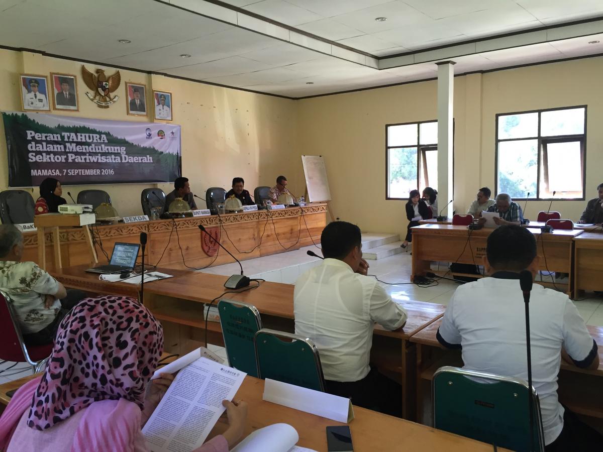 Pada tanggal 7 September 2016, bertempat di ruang pertemun Bapapeda Kabupaten Mamasa, Bursa Pengetahuan Kawasan Timur Indonesia (Yayasan BaKTI) Makassar kembali mengadakan Diskusi Hijau dengan tema ” Peran TAHURA dalam mendukung Pariwisata Daerah”. Kegiatan ini dibuka oleh Bupati Mamasa, Bapak H. Ramlan Badawi yang dalam sambutannya menyampaikan bahwa tahun ini anggaran pemerintah provinsi fokus ke Kabupaten Mamasa khususnya untuk pengembangan wisata. Hal ini tentu menjadi berita baik untuk mendukung pengembangan TAHURA di Mamasa.