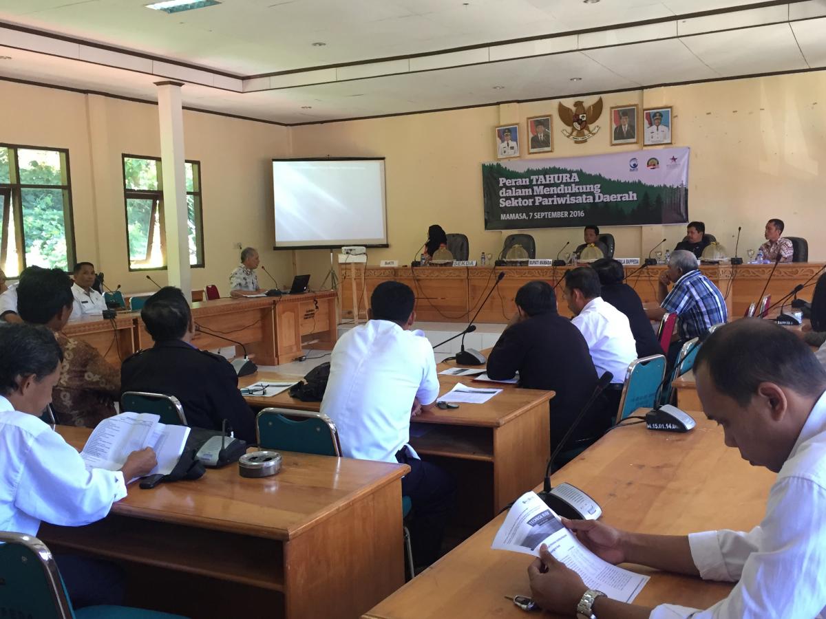 Kegiatan ini dihadiri oleh 35 orang peserta yang terdiri dari perwakilan SKPD se Kabupaten Mamasa, tokoh masyarakat, kepala desa, pemerhati lingkungan dan juga perwakilan MCA Indonesia yang memberikan banyak masukan terhadap pengembangan kawasan Hutan Mamasa untuk dijadikan Tahura. Salah satunya datang dari Bapak Rudolf, seorang aktivis lingkungan yang menyampaikan ”wisata sungai di Mamasa belum tertata, utamanya di Kecamatan Mambulililng kaki gunung Gandang Dewata. Selain itu Mamasa memiliki potensi kopi robusta yang bisa dikembangkan untuk menarik minat wisatawan. Sehingga ini perlu menjadi perhatian pemerintah daerah".