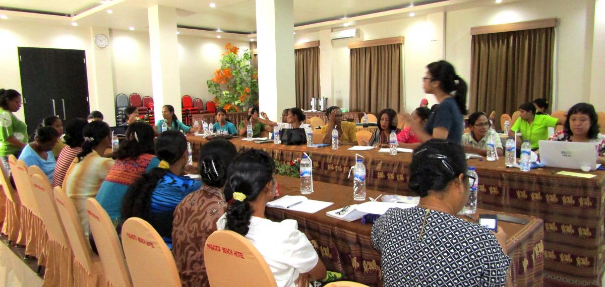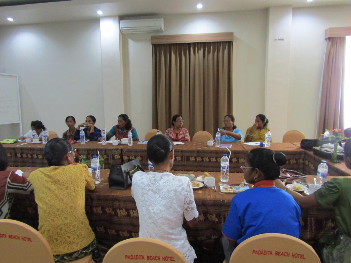 Ada tiga poin utama yang dibahas dalam kegiatan kali ini, yaitu terkait profil desa, kondisi sosial budaya dan adat serta akses dan kontrol perempuan. Menariknya, kegiatan ini bukan sekadar “update” database yang telah dibuat sebelumnya tetapi juga berbagi pengalaman dalam pelaksanaan program antar kabupaten sekaligus menemukan strategi dan solusi bersama. **