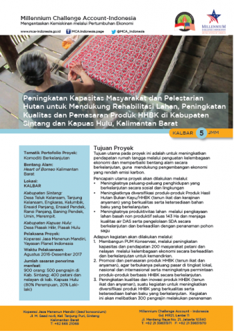 Peningkatan Kapasitas Masyarakat dan Pelestarian Hutan untuk Mendukung Rehabilitasi Lahan, Peningkatan Kualitas dan Pemasaran Produk HHBK di Kabupaten Sintang dan Kapuas Hulu, Kalimantan Barat
