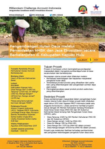 Pengembangan Hutan Desa melalui Pemanfaatan HHBK dan Jasa Ekosistem secara Berkelanjutan di Kabupaten Kapuas Hulu