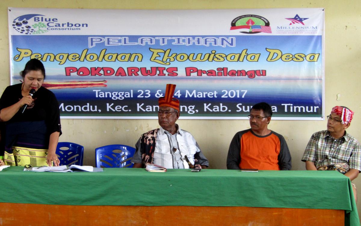 Begitulah sekilas kegiatan yang dilaksanakan di kantor Desa Mondu, Kecamatan Kanatang Kabupaten Sumba Timur tanggal 23-24 Maret 2017. Kegiatan itu berjudul “Pelatihan Pengelolaan Ekowisata Desa Bagi Pokdarwis Prailengu” yang dilaksanakan oleh Blue Carbon Consortium (BCC) atas dukungan Millenium Challenge Account (MCA) Indonesia serta sepenuhnya difasilitasi oleh Bapak Sonny Rozali.