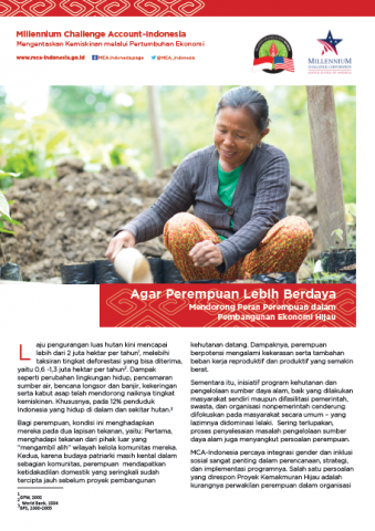 Agar Perempuan Lebih Berdaya Millennium Challenge Account-Indonesia Mengentaskan Kemiskinan melalui Pertumbuhan Ekonomi kehutanan datang. Dampaknya, perempuan berpotensi mengalami kekerasan serta tambahan beban kerja reproduktif dan produktif yang semakin berat.