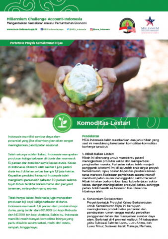 Salah satunya adalah kakao. Indonesia merupakan produsen ketiga terbesar di dunia dan memasok 13 persen dari total konsumsi kakao dunia. Kakao di Indonesia ditanam oleh sekitar 1 juta petani skala kecil di lahan seluas hampir 1,8 juta hektar. Kapasitas produksi kakao di Indonesia telah mengalami penurunan sebesar 30 persen selama tujuh tahun terakhir karena hama dan penyakit tanaman, serta pohon yang menua.