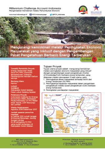 Mengurangi kemiskinan melalui Peningkatan Ekonomi Masyarakat yang Inklusif dengan Pengembangan Pusat Pengetahuan Berbasis Energi Terbarukan