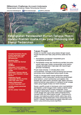 Peningkatan Pendapatan Rumah Tangga Miskin melalui Praktek Usaha Hijau yang Didukung oleh Energi Terbarukan