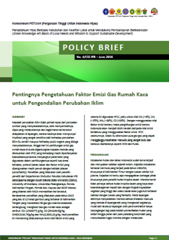 Policy Briefs - Pentingnya Pengetahuan Faktor Emisi Gas Rumah Kaca untuk Pengendalian Perubahan Iklim